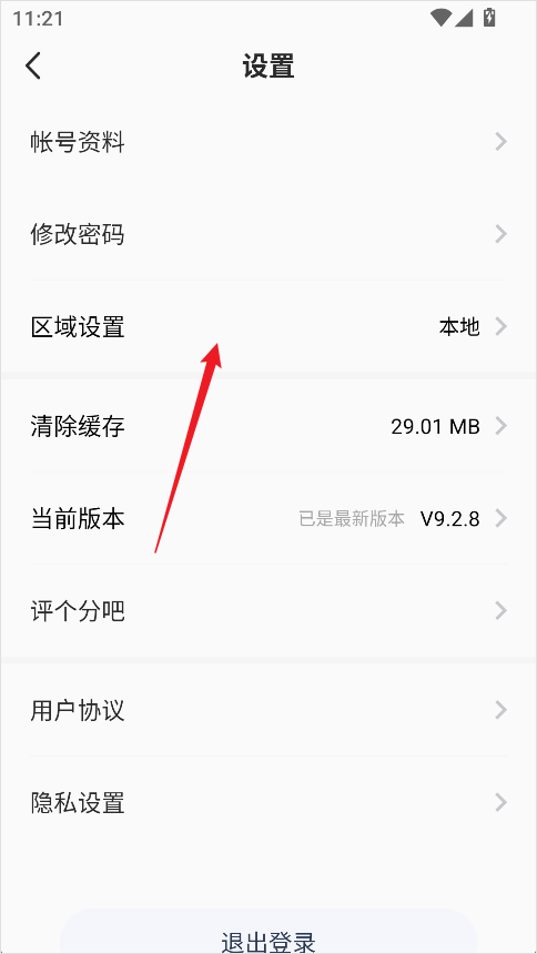 3、进入设置页面后,选择【区域设置】;