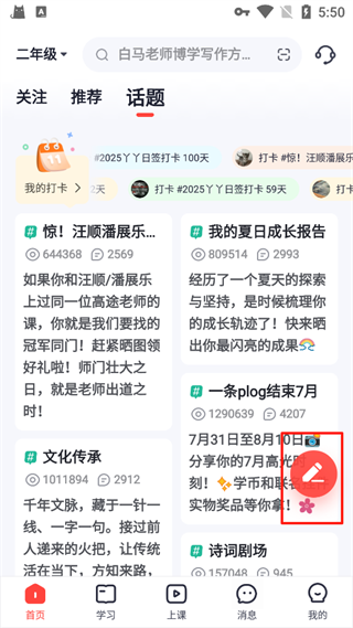 1、打开高途App,在首页选择话题板块,你可以参与大家的话题或者自己发布