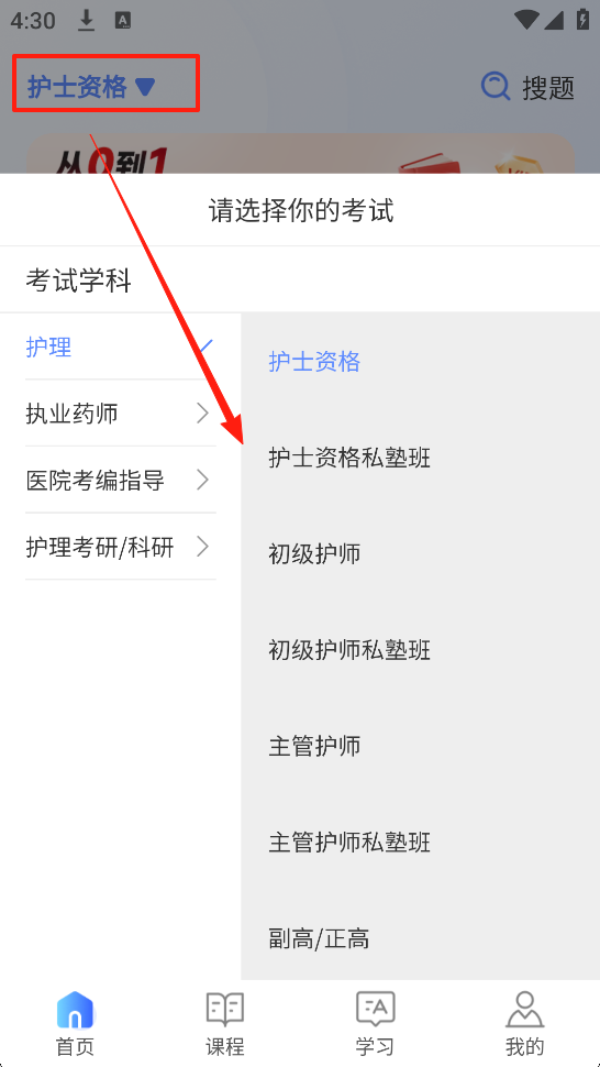1、打开申庭教育App,登录之后,选择要备考的职位