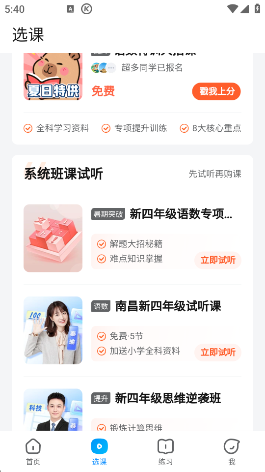 5、除此之外,你还可以点击【选课】板块让小孩听课