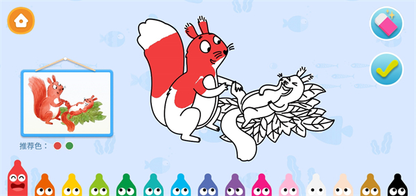 涂色故事:选取绘本故事中的卡通元素,结合有趣的涂色功能,为小朋友带来有趣的体验。