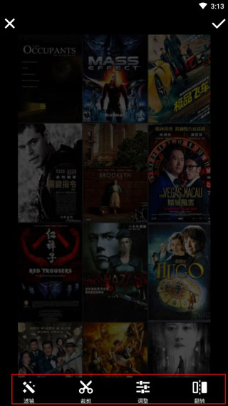 3、根据自己需求,进行滤镜添加。裁剪、调整、翻转等操作