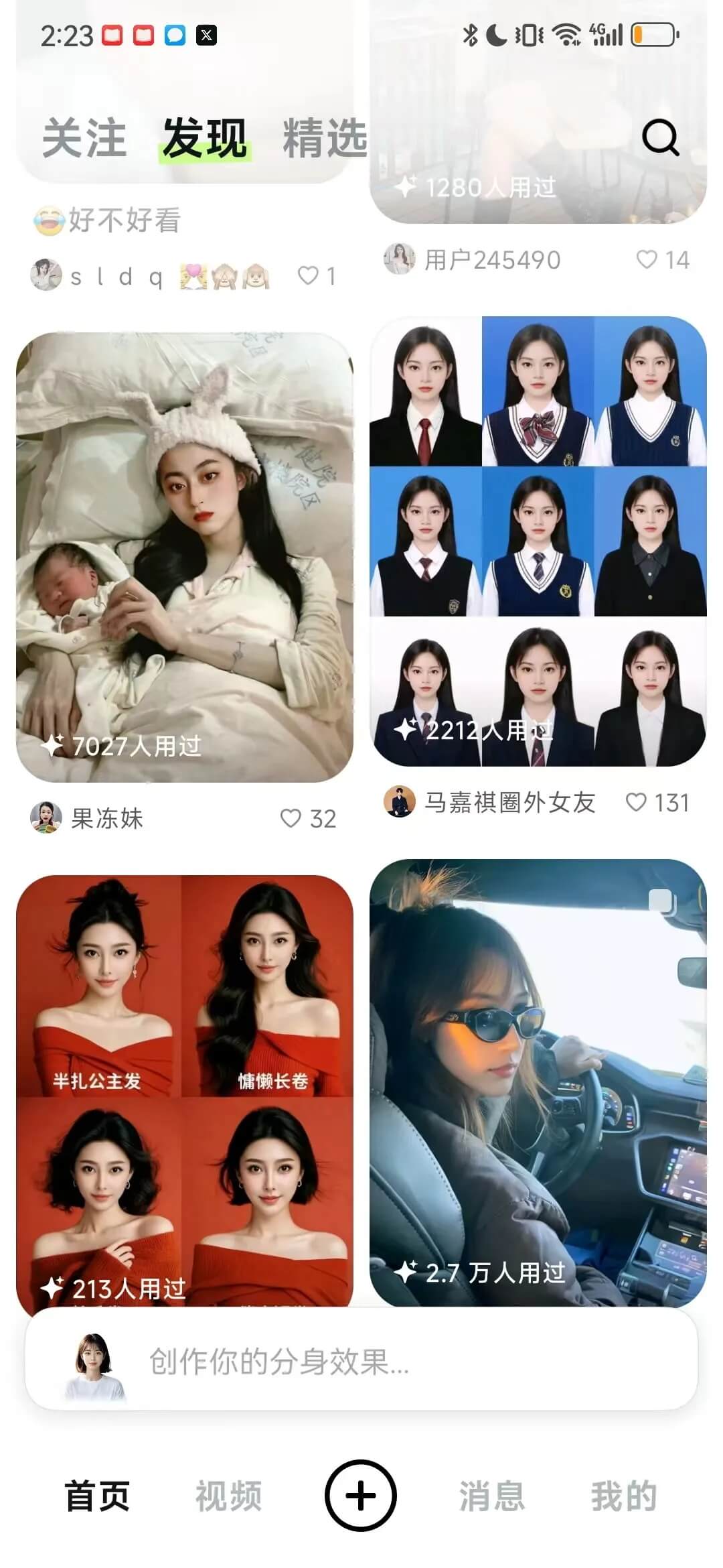 平时主要玩法就是在发现页找感兴趣的做同款