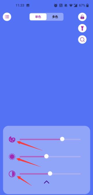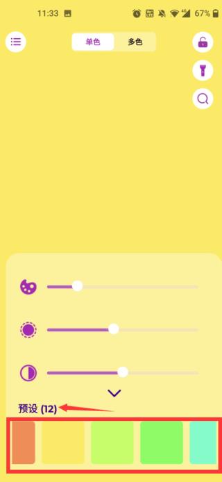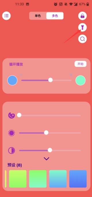 3、调节完氛围灯的光亮后便能点击右上方的手电筒打开灯光了。