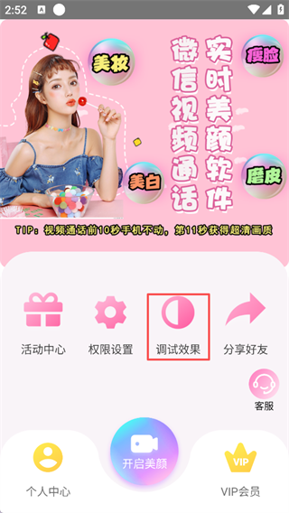 1、打开微颜视频美颜软件,可以先点击【调试效果】