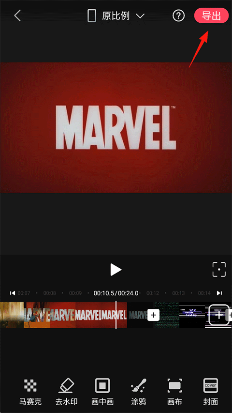6、剪辑制作完毕后点击右上角的导出;