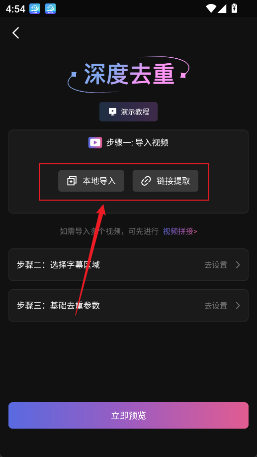 2、这里提供了两种导入方式,本地导入以及链接提取导入