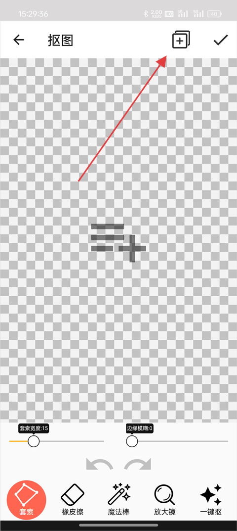 1、选择一张你要被抠图的图片,点击图片中的加号,或者右上角的加号按钮。