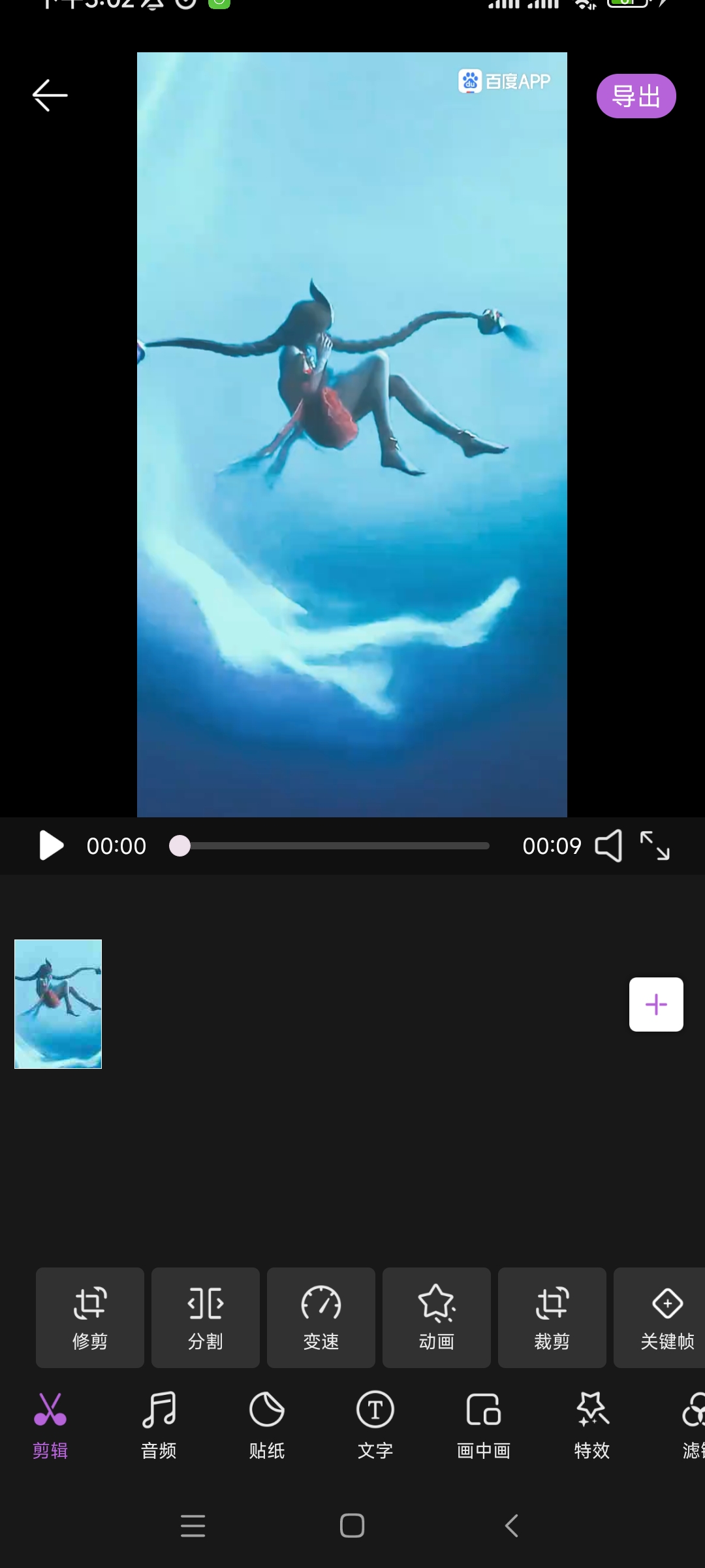 2、添加完视频后,如图,进入以下页面,有许多功能供你使用,向左滑动还有更多功能。
