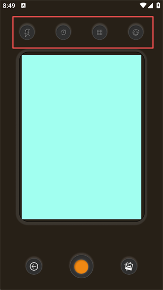 2、随后可以看到上方是【闪光点、拍照计时、九宫格、前后摄像头转换】等功能