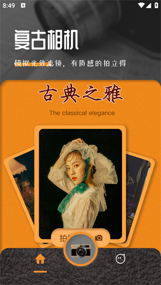 拥有时下非常流行的滤镜和美颜效果,带给你美好的视觉体验!点击拍照即可获取高级滤镜效果,轻松拍出高级大片!