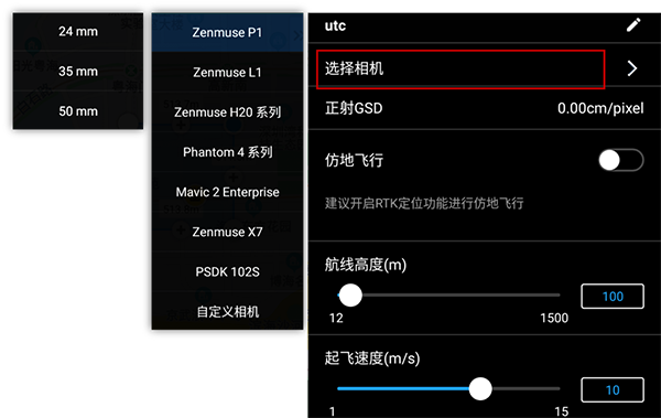 在选择相机界面,选择本次任务所使用的相机型号。如不知型号,可在负载上查看该产品型号。