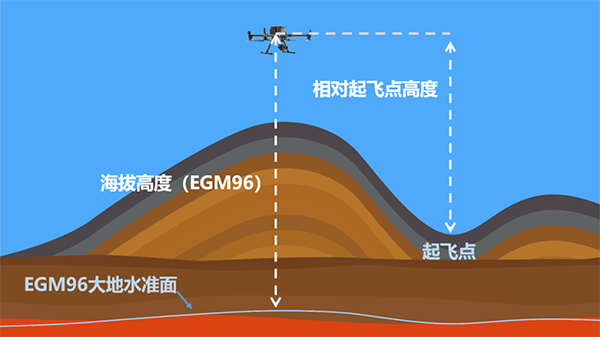 高度模式包括相对起飞点高度和海拔高度(EGM96)两个选项,此选项决定了航线高度的起算面。