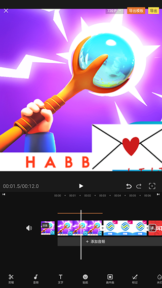 4、可以对视频或者图片素材进行编辑、添加字幕、添加滤镜特效等,编辑完后点击右上角导出即可。