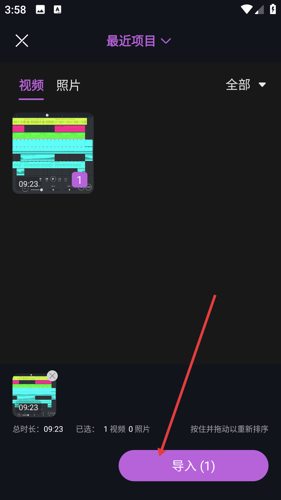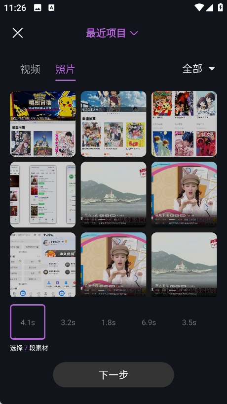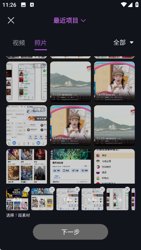 点击“使用模板”后,系统会提示你导入素材,一般支持上传3~30张照片或视频片段。