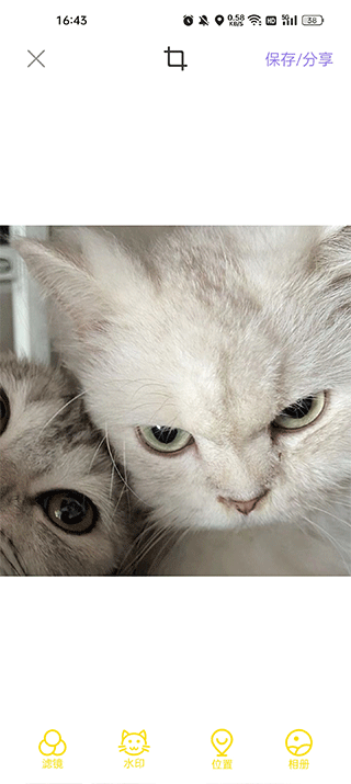 2、点击拍摄,你可以在里对宠物进行抓拍,并且可以添加水印和滤镜;