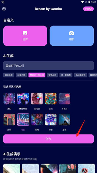 2、然后选择感兴趣的艺术风格,比如赛博朋克、蒸汽波、写实等等;