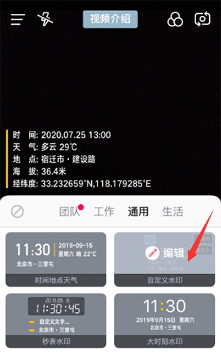 2、然后直接点击“自定义水印”,进入编辑状态。
