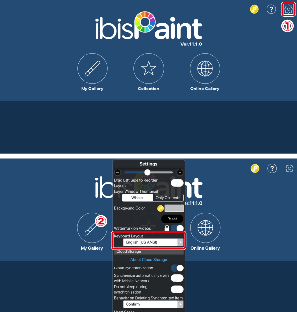 上面的屏幕是 Title 屏幕。首先,点按 ①[ 我的图库 按钮 ]。