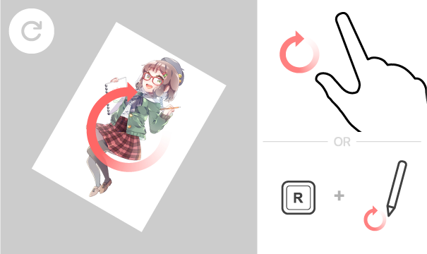 您可以通过用两根手指圆周拖动画布来旋转画布。如果连接了蓝牙或 USB 键盘,也可以通过按住 [R 键] 并循环拖动笔来旋转它。