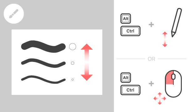 按住 [Alt 键] + [Ctrl 键] 同时拖动笔。如果使用鼠标,请在按住 [Alt 键] + [Ctrl 键] 和鼠标左键的同时移动鼠标。