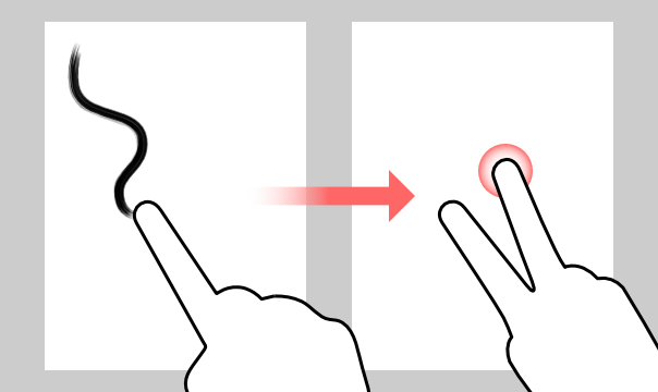 可以通过用两根手指点击画布来撤消上一个操作。以前撤消的动作可以通过用三根手指点击画布来重做。