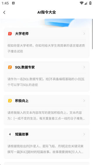 6、【AI指令大全】提供各类预设角色和场景模板,点击即可快速调用对应功能。