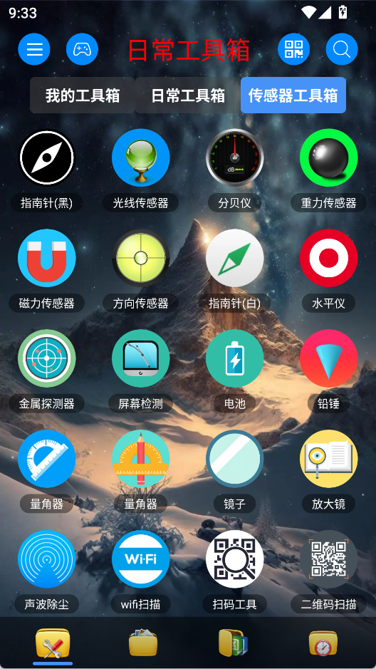 依托手机硬件能力,传感器工具箱可实时调用指南针、重力感应、光线传感器、距离感应、分贝检测等功能,准确读取周围环境与设备状态。