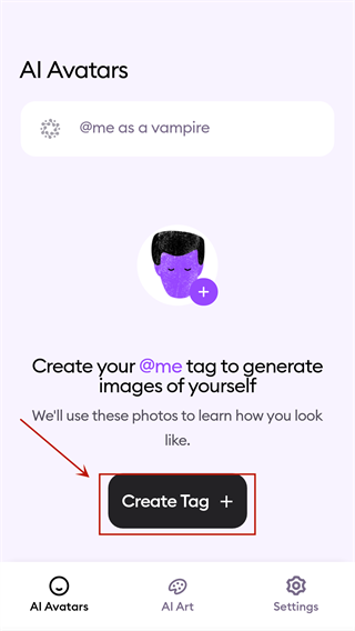 2、进入软件后,默认为【AI Avatars】页面,在该页面点击【Create Tag】可创建一个新的项目;