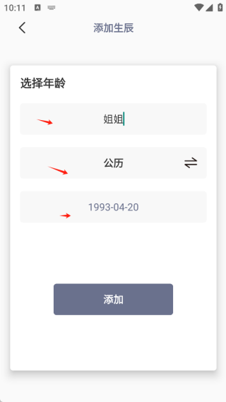 3、填好家人的昵称和生日日期,有农历和公历选择