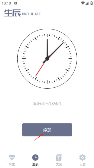 1、打开余生App主页面,在页面底端找到生辰并点击