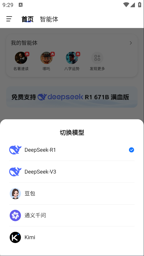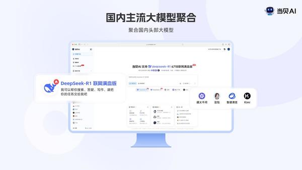 当贝AI的一大亮点是其对多模型的支持能力。目前,当贝AI已经支持国内主流的大模型,如满血版DeepSeek-R1、DeepSeek-V3、豆包、通义千问、Kimi等热门大模型。这种多模型的支持能力,不仅让用户可以根据不同的需求选择适合的模型,也大大提升了产品的灵活性和适用性。