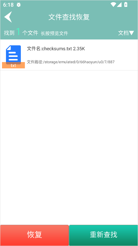 4、点击“恢复”按钮,即可快速将误删文件恢复至手机存储。