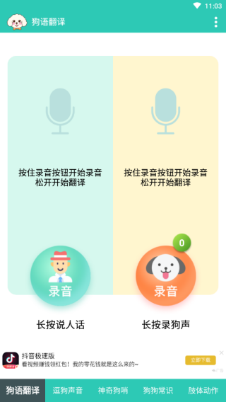 长按录狗声:当狗狗对你叫的时候,长按录音,你就能读懂狗狗的情绪,快带它愉快的玩耍吧!