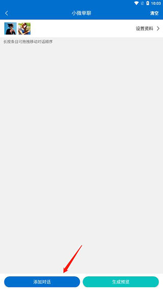 5、使用对话生成器截图神器app最常用的就是对话截图,方法很简单,点击小微单聊,可以看到两个微信,点击设置资料可以为其设置信息;
