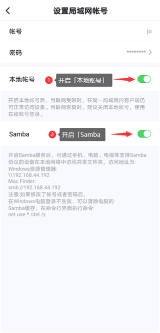 2、进入【设置局域网账号】界面,设置局域网账户和密码后,选择完成