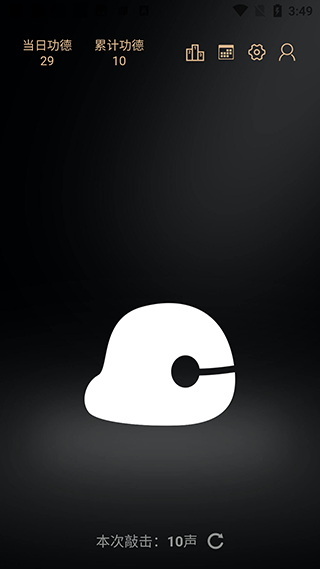 2、屏幕上方会累计当日的功德和累计的功德,底部会显示当下敲击的次数,点击可以重置。