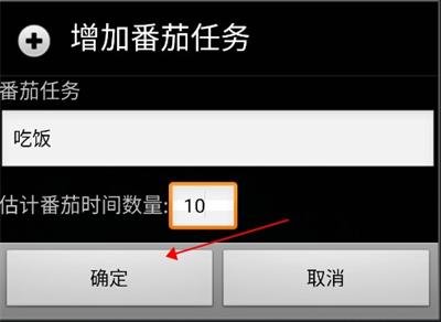 2、添加增加任务(吃饭),设置番茄时间数量,点确定