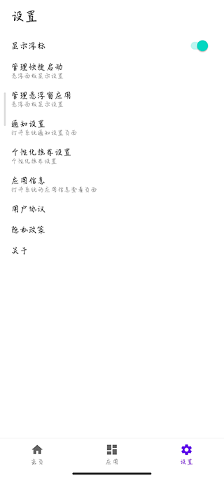 2、应用界面,可以找到很多常用的软件设置悬浮窗功能