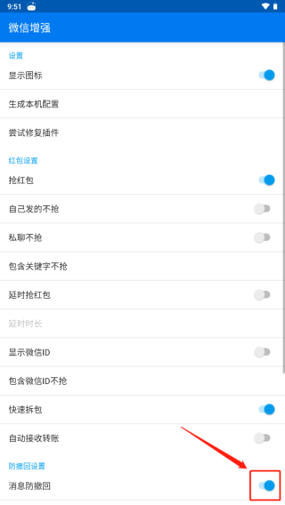 1、下载打开微信增强app,找到防撤回设置