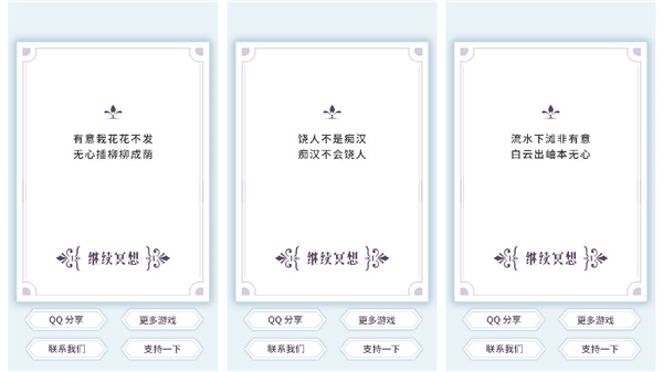 我从不迷信这个,偶尔玩一玩,权作消遣,也还蛮有趣。游戏画面也很干净漂亮,让人看了觉得很舒服。