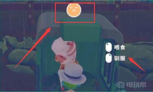 4、之后就可以看见相对应的羊驼出现在捕笼了,上图表情为宠物的心情,点击驯服如下图所示: