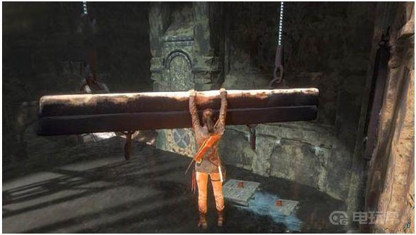 6、在跳往穹顶的时候发生坠落,通路断掉,开始解谜。首先找到圆洞游到另一边,拾取油桶放到闸门前,开枪引爆它,释放水流。水位提升第一次。