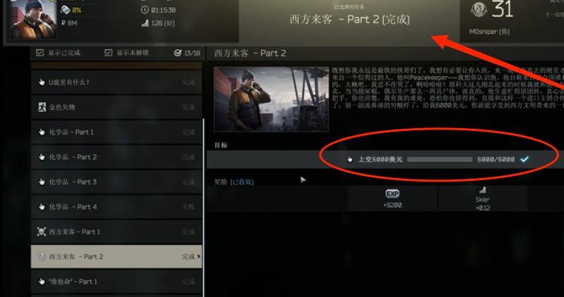 6、然后就可以解锁关键任务【西方来客-1】,需要完成击杀7名USEC等任务。