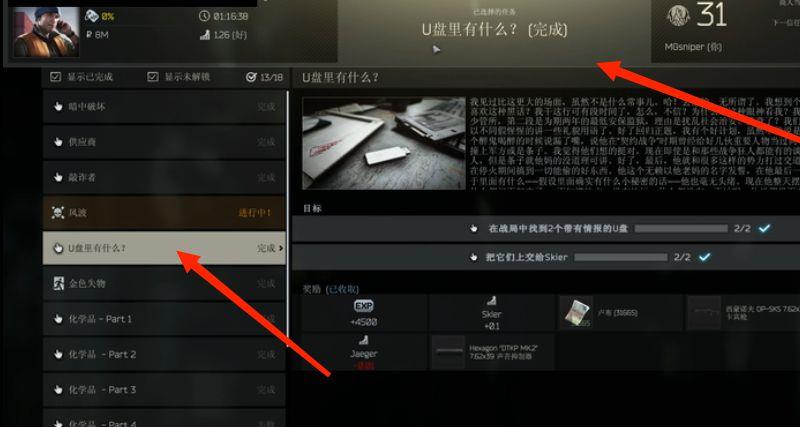 4、然后会解锁【U盘里有什么】任务,完成任务条件。