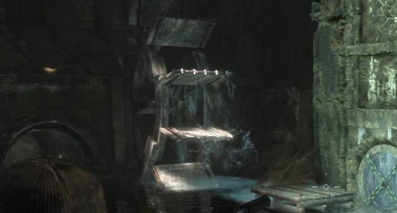 2、技能书在塔楼上,所有上去的道路都塌了,所以关键点是提高水位,游过去。先到左侧通道里,把油桶扔到门口,然后打爆它,炸开水门。