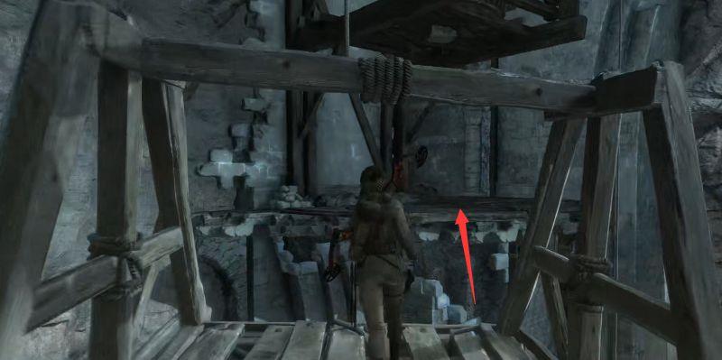 1、首先,我们需要等待时机。等到吊起来的木板移动到高台的时候,我们用绳索箭矢将两个绳索柱相连。