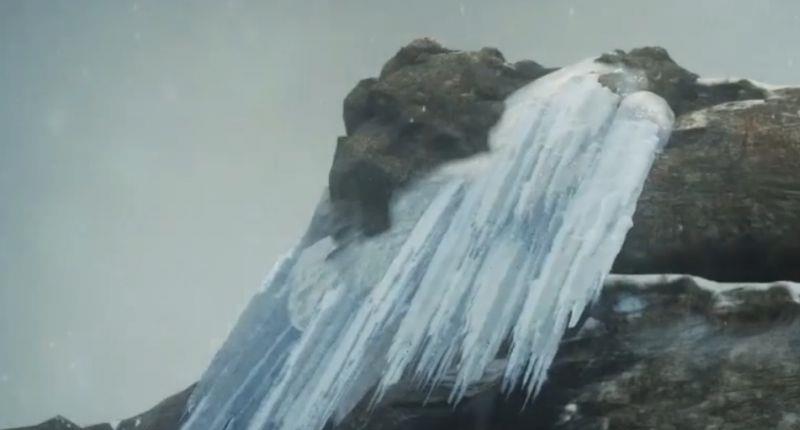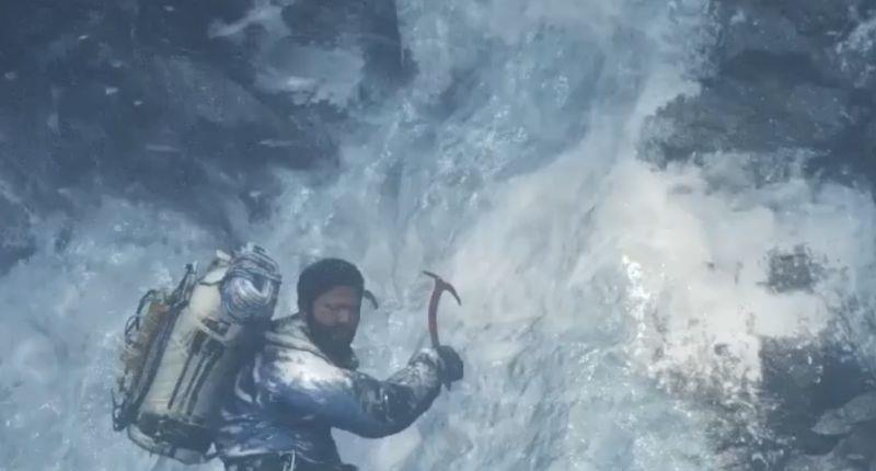 14、成功附着冰墙,继续向上攀爬,到达此处的山顶后,会出现剧情。开始向前逃生。