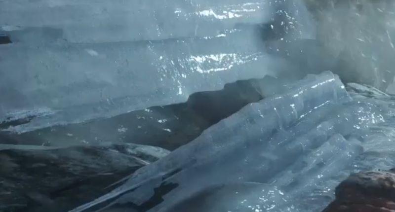 11、这里又出现断裂,不用说,继续按下空格键,向上跳跃后再按下E键使用斧头附着上面的冰墙。