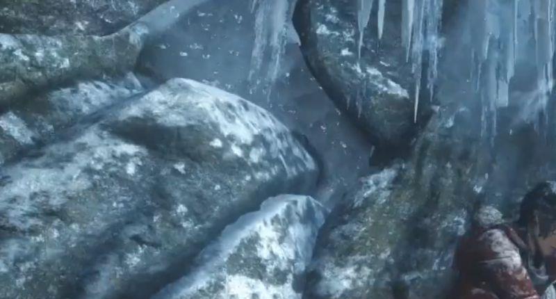 8、向上攀爬,一路来到此处冰墙尽头,按下空格键,向上跳跃抓住上面的边缘。向右边跳跃越过间隙,抓住右边的边缘。
